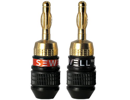 Get the most out of your home audio system by ensuring the best connection from your speaker cable to your receiver with the Sewell Deadbolt Banana plugs. Using self crimping teeth these plugs provide a simple, secure, and low profile connection without requiring soldering or screws. These 1.6" inch plugs are extremely low profile making it so you can put your speakers or receiver closer to the wall. Unlike other banana plugs that use low quality metals like zinc alloy the Sewell Deadbolt Banana plugs use pure copper and high quality