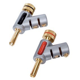 These Premium Hi-Fi audiophile angled banana plugs are guaranteed to deliver high fidelity audio from your HiFi components to your speakers. They feature expandable banana plug tips that will create a firm grip within a speaker binding post terminal. They are constructed of 24k gold plating which guarantees maximum signal transfer and prevents against corrosion. If your stereo or speakers have banana plug binding posts, these banana plugs are ideal for you.